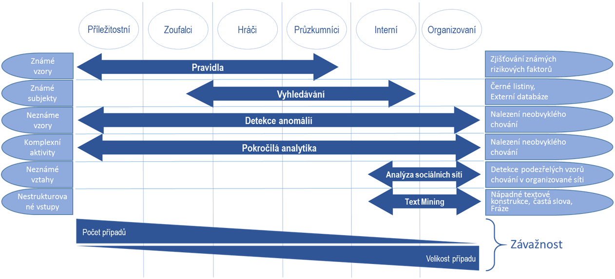Ve všech těchto případech je však pravděpodobnost neodhalení (tedy úspěšnosti podvodu) významně větší, než „že se na to přijde“. Pokud by se tento poměr obrátil, určitě by bylo možno zachránit mnohem více peněz, ale také by to významně přispělo k prevenci (příště už si to každý dvakrát rozmyslí, když bude tak velké riziko odhalení). Toho lze docílit pomocí už zmíněných netriviálních analytických metod. Patří mezi ně různé typy statistické analýzy, prediktivní modelování, analýza sociálních sítí, metody data miningu. Fungují tak, že na základě dostatečně velkých souborů dat vytvářejí modely, jejichž podstatou je zachycení a formalizace vztahu mezi chováním subjektů a daty o nich. Konkrétně lze například z dat zjistit, že daný subjekt či transakce je kandidátem na provedení detailní kontrolní (či jiné) akce.