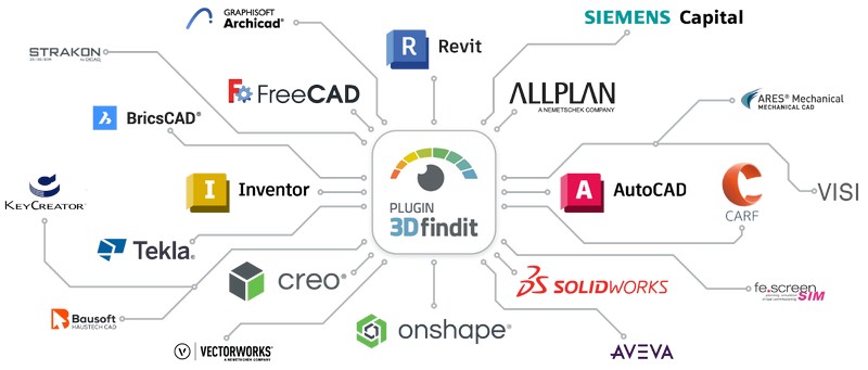 3Dfindit lze bez problémů integrovat do běžně používaných CAD a PLM prostředí, jako jsou SolidWorks, Inventor, NX nebo Catia V5. Díky tomu se stává ideálním nástrojem nejen pro strojírenství, ale i pro automobilový průmysl, energetiku či další odvětví.