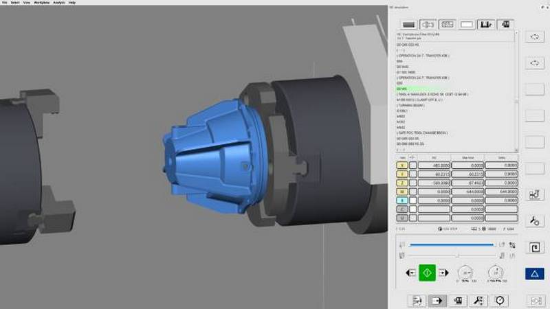 Demonstrace na EMO nabídla také příležitost vyzkoušet si nejnovější verzi hyperMILL VIRTUAL Machiningu. Poprvé byla simulována strojní souprava s hlavním a protilehlým vřetenem a frézovací hlavou, aby bylo možné předvést, jak se programuje a simuluje přenos dílů. Dosud bylo možné simulovat pouze programování, nyní je možné simulovat i přenos. Obráběcí operace s hlavním a protilehlým vřetenem lze tak pohodlně naprogramovat v seznamu úloh a následně lze podrobně simulovat obráběcí sekvenci.