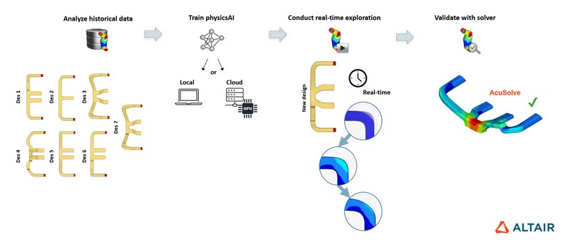 Díky nim opět získáváte zpravidla stejné benefity jako s AI: rychlost, pružnost, ověření více variant, zpřístupnění simulací méně expertním uživatelům. Altair nabízí v této oblasti solvery, které vám pomohou s pevnostními analýzami, predikcí únavy, analýzami vibrací, přenosy tepla nebo prouděním kapalin. Příkladem takových solverů jsou SimSolid, Inspire Fluids či FlightStream.