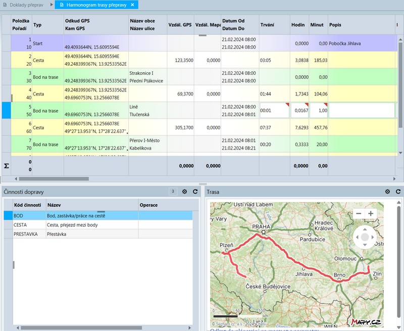 Modul Doprava propočítává trasy pro sestavené doklady přeprav tak, aby byly optimálně obslouženy požadavky na přepravu na jednotlivých dokladech při optimálním využití zdrojů.