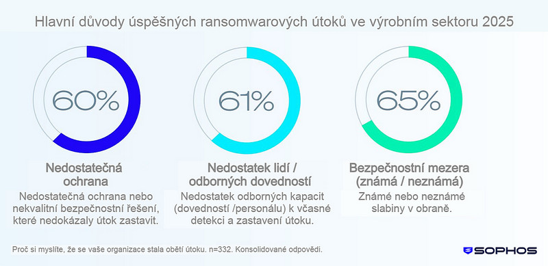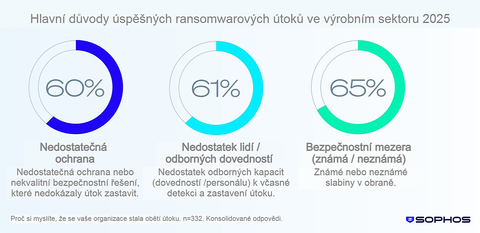 Studie Sophos State of Ransomware in Manufacturing and Production je založena na nezávislém průzkumu u 332 výrobních podniků, které byly v uplynulém roce zasaženy ransomwarem. Mezi její hlavní zjištění patří: