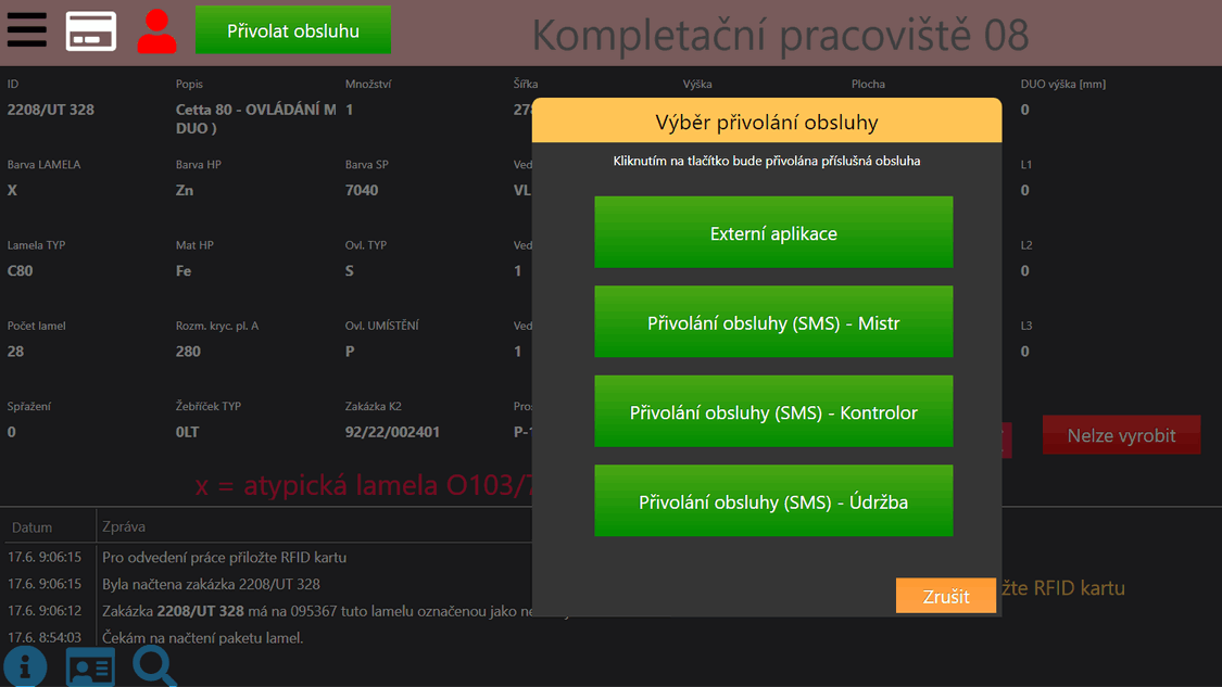 - Monitoruje pohyb každé jedné žaluzie od první výrobní operace až po zabalení kompletní zakázky.