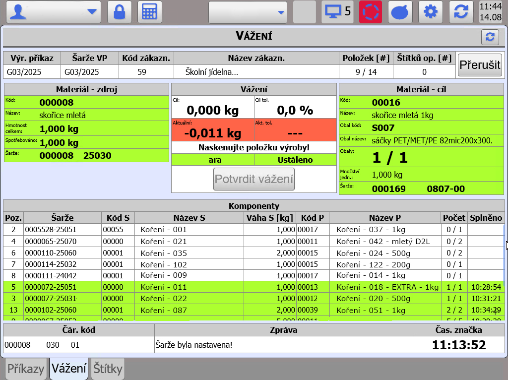 Další oblast spolupráce a neodmyslitelnou komponentou pro potravinářské výroby jsou váhové systémy. Ve výrobě potravin hrají váhy zásadní roli, umožňují přesné dávkování surovin podle receptur, udržují konzistentní kvalitu výrobků. Přesné vážení také minimalizuje ztráty surovin a přispívá k úsporám nákladů. Klíčová je pravidelná kalibrace vah, kterou pro nás zajišťuje Compas automatizace. Měření je tak přesné a splňuje přísné normy potravinářské výroby i legislativní požadavky. Automatizace míchání koření, kterou jsme realizovali společně s firmou Compas automatizace, nám výrazně usnadnila a zefektivnila výrobu. Díky ní máme větší kontrolu nad dávkováním surovin, což zaručuje stálou kvalitu kořenících směsí. Proces je přesnější a rychlejší, zároveň minimalizuje riziko lidské chyby. Navíc automatizace umožňuje lepší sledování a dokumentaci výroby, což je pro nás důležité z hlediska dodržování přísných potravinářských standardů. Celkově nám tato technologie pomohla zvýšit produktivitu a zároveň zajistit vysokou kvalitu výsledného produktu.