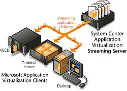 Obr. 3: Schéma virtualizace aplikací – Microsoft (zdroj: prezentace Microsoft Application Virtualization)