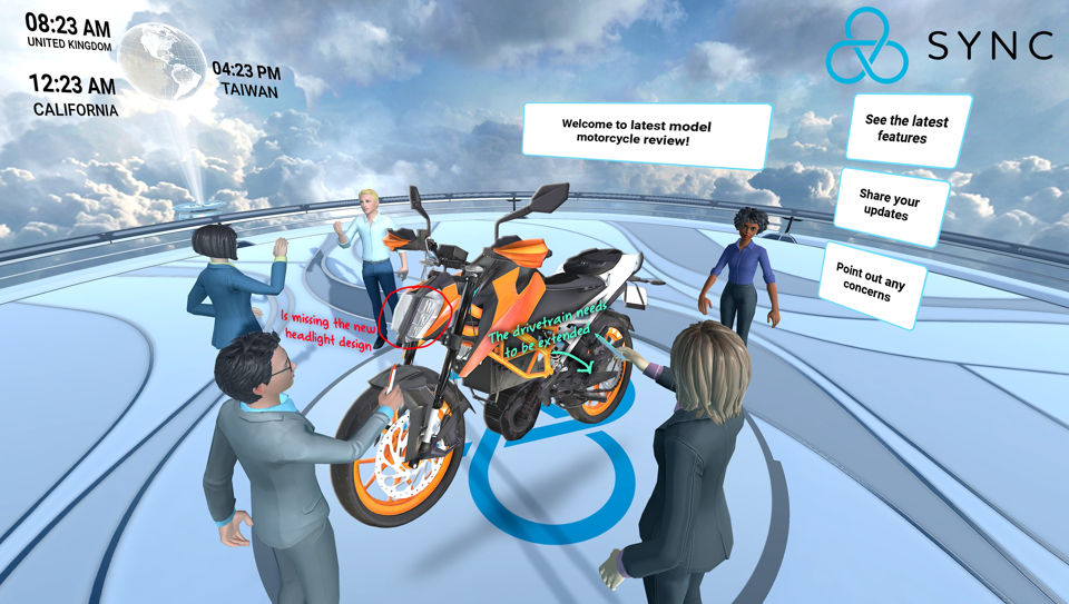 VIVE Sync je řešením pro spolupráci a meetingy ve virtuální realitě (VR). Umožňuje týmům a partnerům, aby se spojili a spolupracovali ve sdíleném virtuálním prostředí. Nabízí snadno upravitelné avatary i vytváření soukromých zasedacích místností.