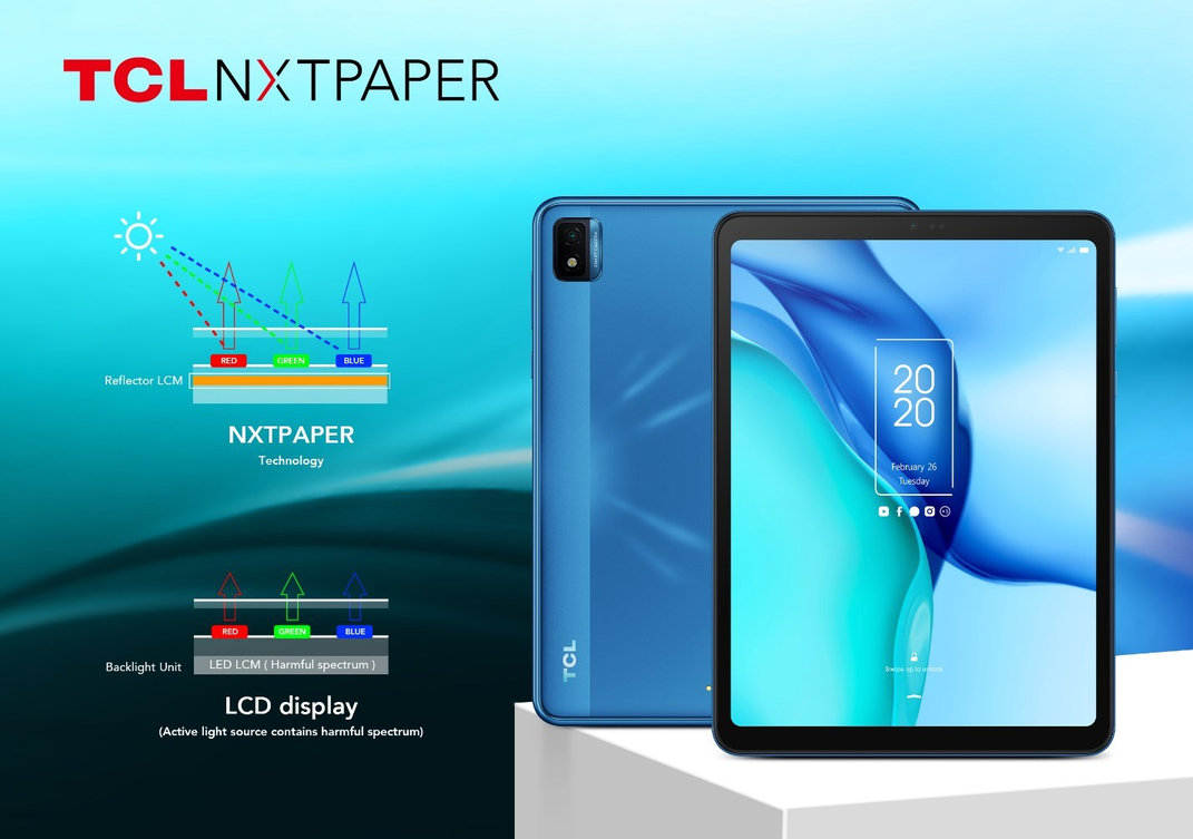 Obrazovky nevyzařující světlo jsou nejlepšími displeji z hlediska ochrany zraku, ale jedinou volbou byla dosud technologie e-ink, která produkuje obraz v omezené paletě barev. Technologie NXTPAPER vyvinutá společností TCL zobrazuje obraz ve všech barvách, a přitom zajišťuje stejnou úroveň ochrany očí jako e-ink čtečky. NXTPAPER má nejen o 25 % vyšší kontrast než většina e-ink tabletů, ale zároveň je o 65 % energeticky účinnější než standardní LCD obrazovky. TCL představila svůj první tablet s technologií NXTPAPER v lednu na veletrhu CES.