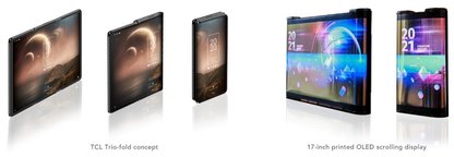 Nové technologie displejů znamenají také změnu ve tvaru smartphonů. TCL proto pokračuje ve vývoji skládacích a rolovacích zařízení vybavených panely od TCL-CSOT. Patří sem koncept tabletu tri-fold, představený v loňském roce, a 17palcový tištěný OLED rolovací displej tenký pouhých 0,18 mm. Společnost TCL na veletrhu CES 2021 oznámila, že plánuje představit svůj první skládací nebo rolovací telefon ještě letos.