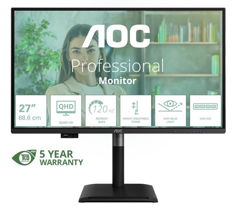 Společnost AOC představila modelovou řadu kancelářských monitorů Professional P4, která na první pohled zaujme snadno přístupným vysouvacím USB hubem včetně vyhrazeného portu USB-C. Řada P4 vyniká také vyšší obnovovací frekvenci 120 Hz, která byla doposud k vidění jen u herních monitorů. Pro maximální komfort a ochranu zdraví nabízí nové monitory výškově nastavitelné stojany a hardwarovou technologií s nízkým vyzařováním modrého světla. Pro firmy je důležitou zprávou také, že všechny modely řady P4 mají certifikaci TCO 10. generace a 5letou záruku.