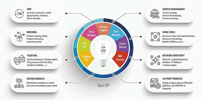 V jednom společném integrovaném řešení jsou podporovány veškeré procesy OSS a BSS, které telekomunikační operátor potřebuje pro svůj provoz, včetně například podpory investiční výstavby včetně správy věcných břemen. Základní schéma řešení je uvedeno na obrázku 3, kde je funkčnost TSM doplněna o řešení Single Point of Truth na bázi CROSS pro část „Network Inventory“.
