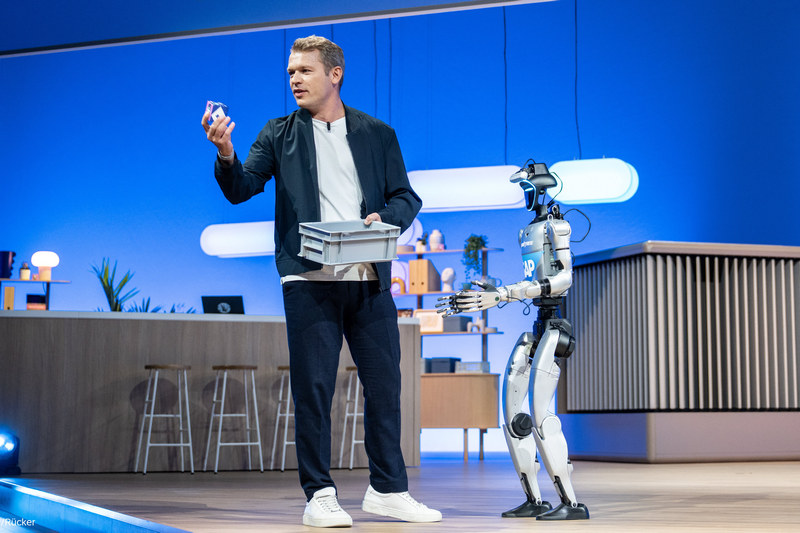 Trend automatizace a robotizace procesů prezentoval velmi efektně Philipp Herzig, CTO společnosti SAP, ve spolupráci s robotem Unitree, který mu doručil zásilku přímo na pódium.