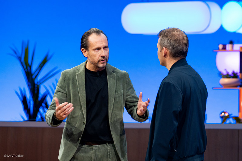 Mezi přednášejícími z řad zákazníků SAPu byl i Torsten Mueller ze společnosti Sartorius, který se s účastníky konference podělil o zkušenosti s automatizací obchodních a logistických procesů. Na snímku diskutuje s Philippem Herzigem, CTO společnosti SAP.